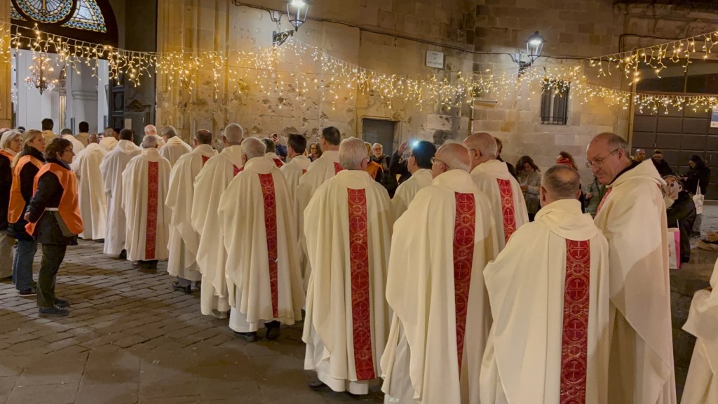 Aquest diumenge 29 de desembre a la tarda, ha sortit la processó encapçalada pel Cardenal Joan Josep Omella de l’Oratori de Sant Felip Neri cap a la Catedral de Barcelona, on s’ha dut a terme la missa de celebració de l’inici del Jubileu.